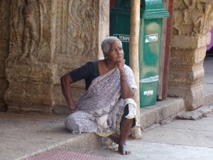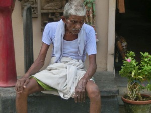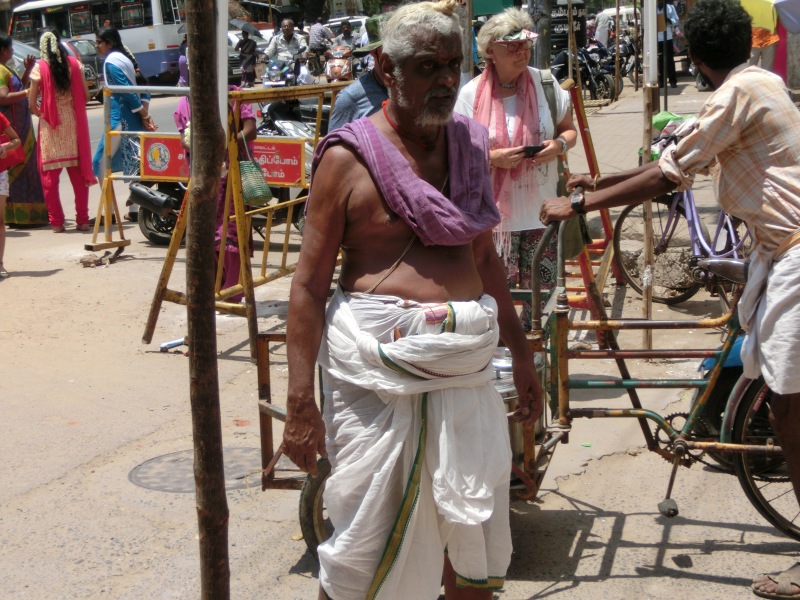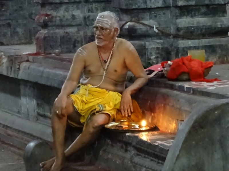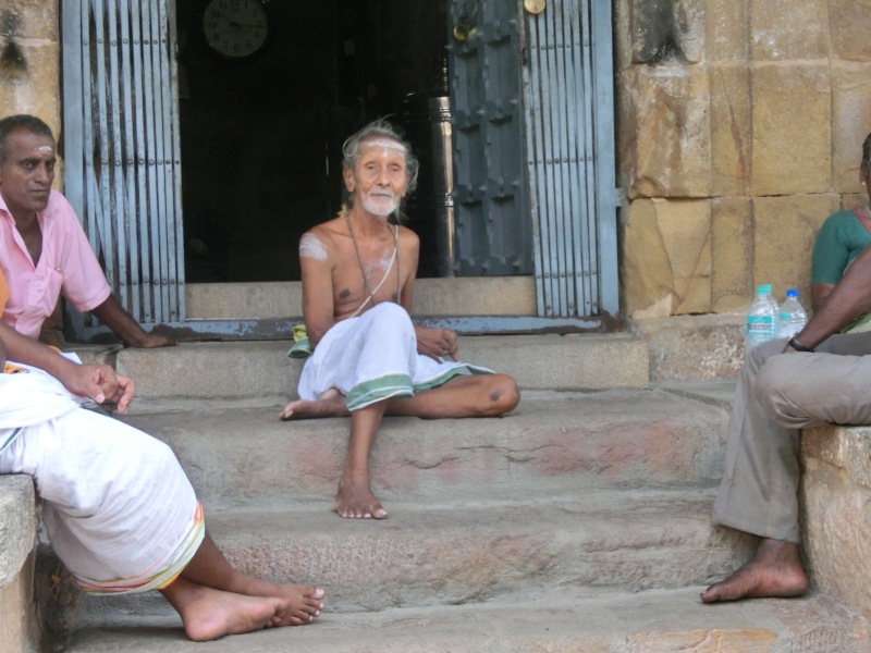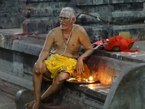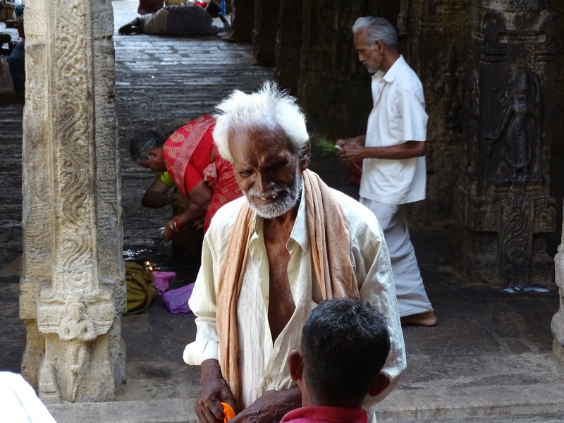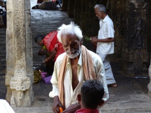 Das ist eine sehr große Anlage. Es ist der einzige Tempelkomplex, welcher sich in der Hand der Priester befindet. Sie tragen nur einen weißen Lendenschutz, haben einen nackten Oberkörper und einen Seitenzopf. Auch hier hieß es Schuhe aus und auf Tempelsocken weiter. Es gab hier so viele Bettler, das man sich einfach schlecht fühlte, denn allen konnte man ja nichts geben.