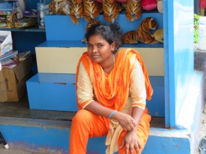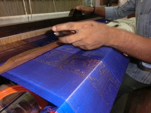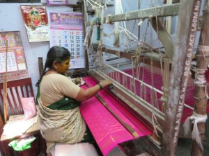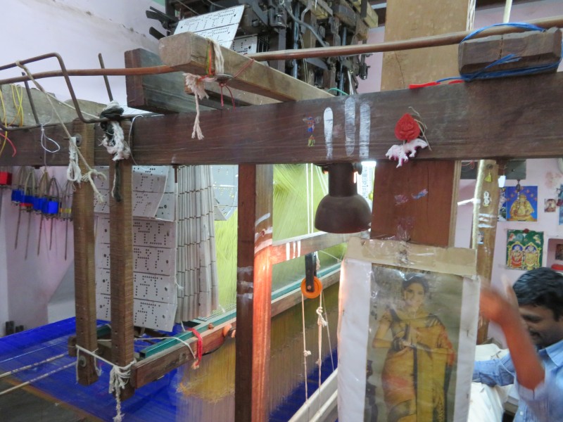 Während der Weiterfahrt mit dem Bus machten wir verschiedene Besichtigungsstopps und besuchten eine indische Familie, die die traditionellen „Saris“ webten. Ein Raum in dem gearbeitet wird und ein Raum in dem die Familie wohnte.