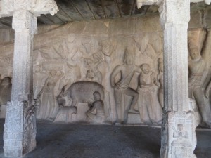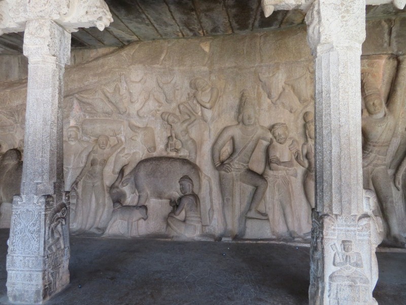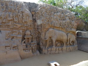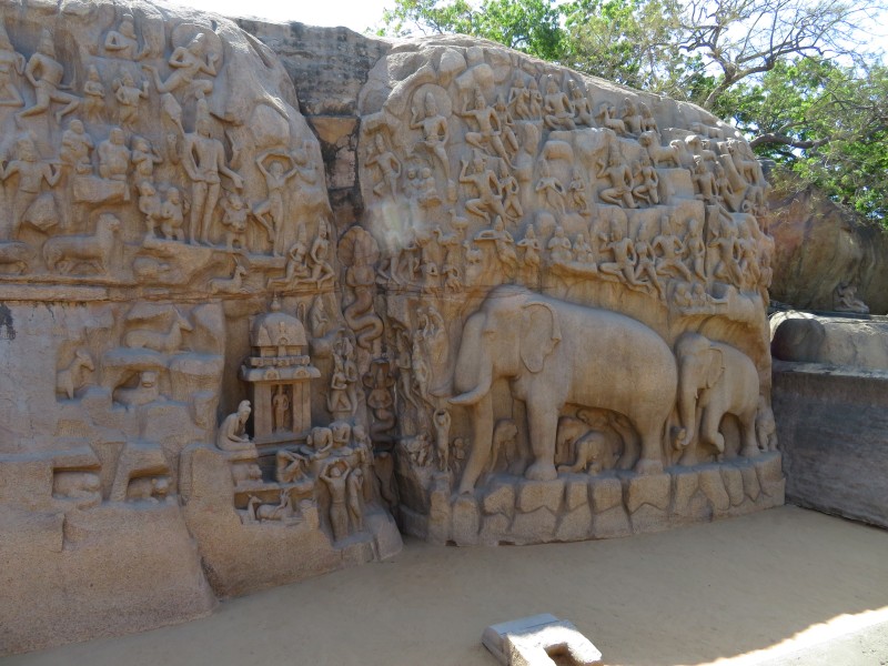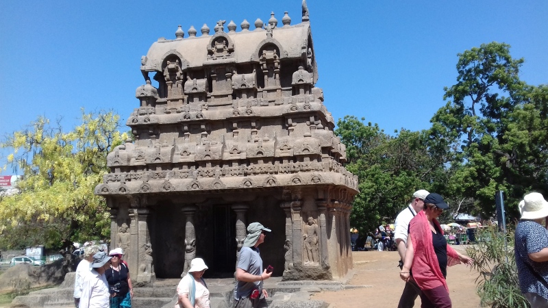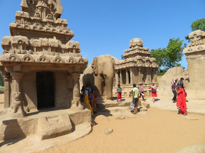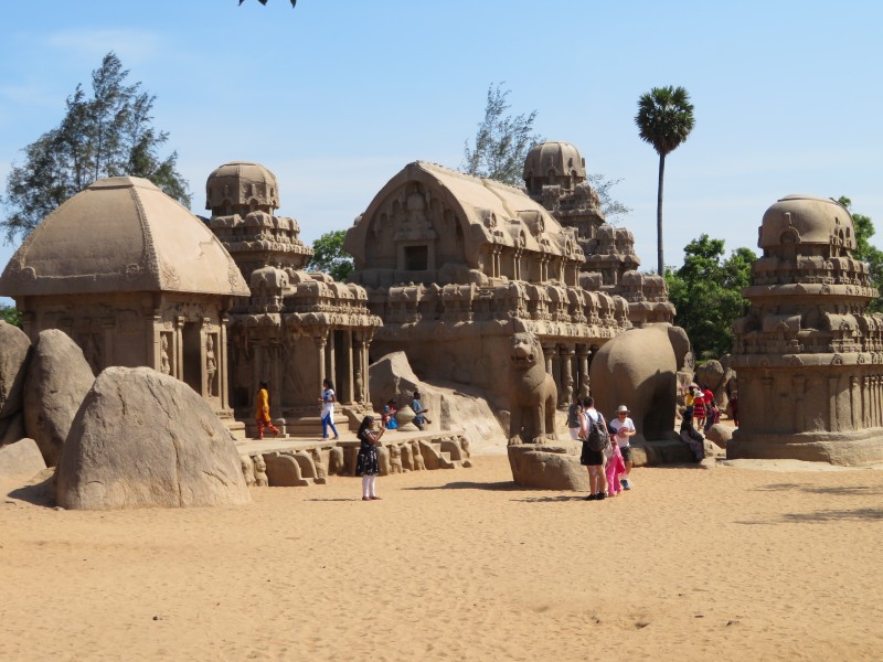 Quelle Wikipedia: „Mamallapuram ist ein Ort im indischen Bundesstaat Tamil Nadu, 55 Kilometer südlich von Chennai (Madras) an der Koromandelküste gelegen. Die Einwohnerzahl beträgt rund 15.000 (Volkszählung 2011). In Mamallapuram findet sich einer der wichtigsten archäologischen Fundorte Südindiens mit zahlreichen Baudenkmälern aus der Pallava-Zeit (7. bis 9. Jahrhundert). Der Tempelbezirk von Mamallapuram gehört seit 1985 zum UNESCO-Weltkulturerbe. Deswegen und dank seiner Sandstrände gehört Mamallapuram zu den wichtigsten touristischen Attraktionen Tamil Nadus“.