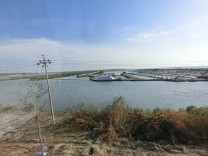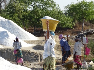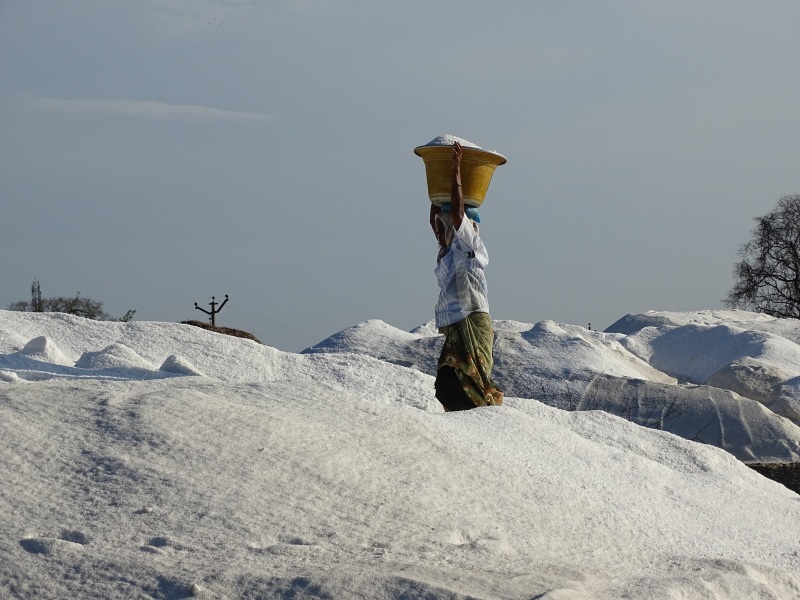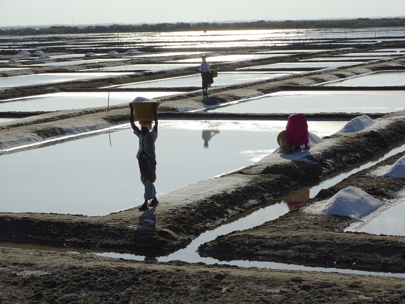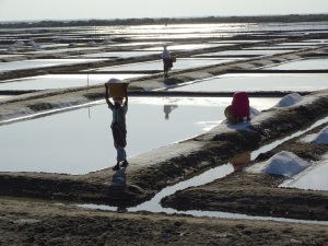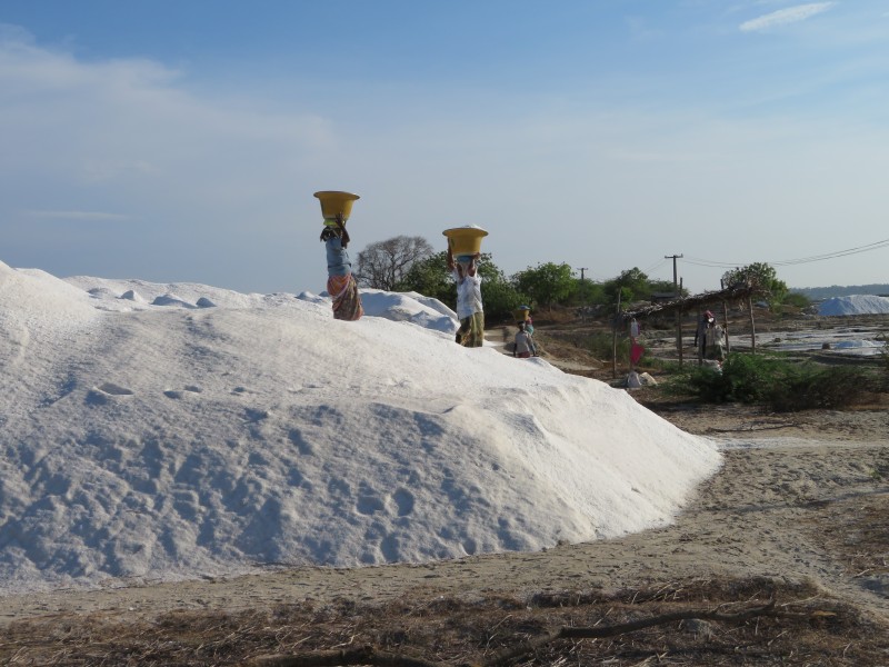 Einen kurzen Fotostopp legten wir an den Salzplantagen. Hier wird Salz gewonnen und abtransportiert. Der Wahnsinn und die Menschen arbeiten barfuß im Salz.