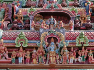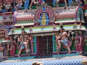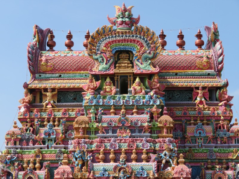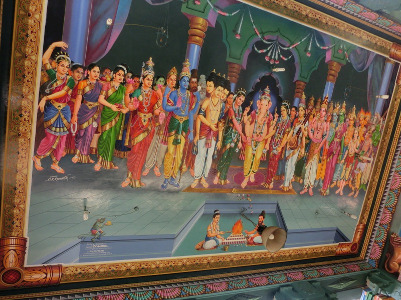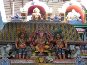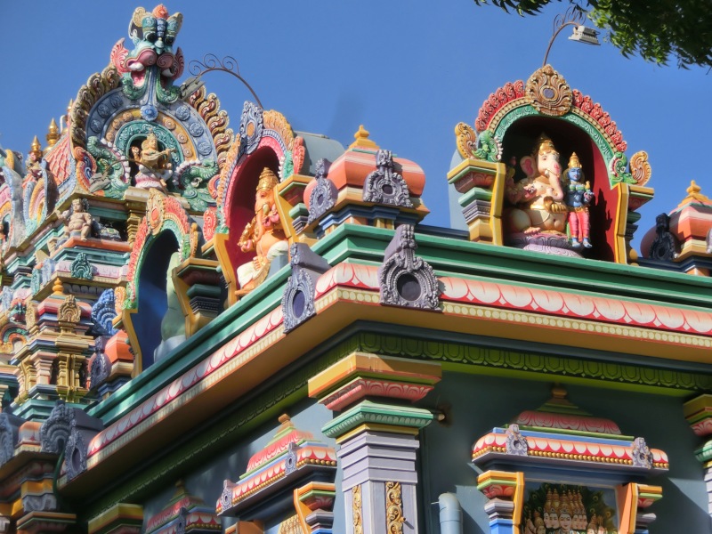 Plötzlich standen wir vor einem wunderschönen Hindutempel, dem bunten Ganesha Tempel (Elefantengott).