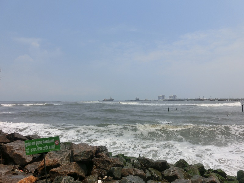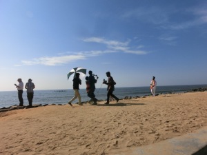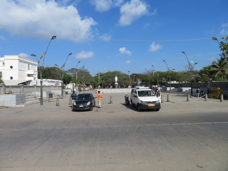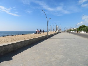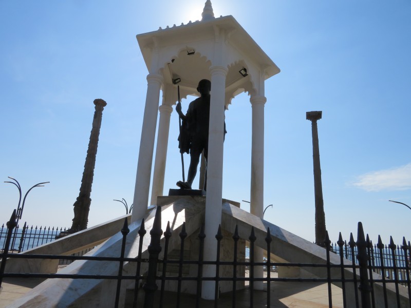 Weiter ging es zu Fuß zur Küstenstraße. Endlich ein schönes erfrischendes Lüftchen bei der Hitze. Hier an der Küstenstraße steht die riesige Gandhi Statue.