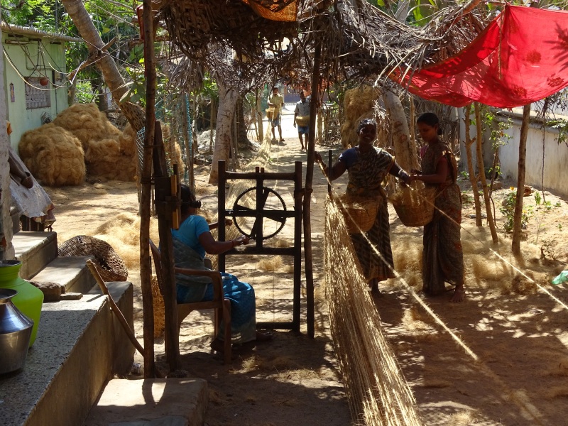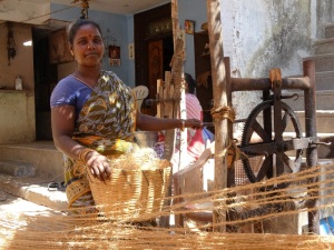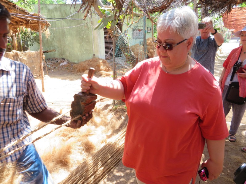 Der nächste Zwischenstop erfolgte an einer Familienmanufaktur, wo Seile aus Kokosnussfasern hergestellt wurden. Dort durften wir sogar selber handanlegen.