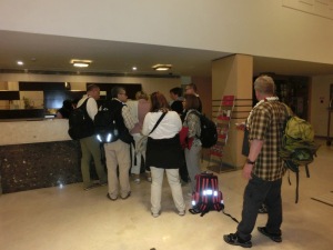 Bis zum Weiterflug mussten wir nun 2 Stunden überbrücken. Wir lernten unsere zehnköpfige Reisegruppe (4 Männer, Wolfgang, Gerd, Markus und Dieter, 6 Frauen, Birgit, Renate, Marlise, ich und die zwei Ärztinnen Inge und Sabine) kennen. Alle sehr nett.