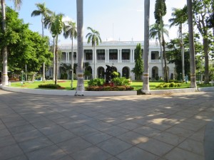 Letztmalig wurden wir am Morgen um 6.15 Uhr geweckt. Nach dem letzten indischen Frühstück ging es mit gepackten Koffern um 9.45 Uhr los. Es stand ein besonderer Besuch an. Die Hauptsehenswürdigkeit Mysores ist der riesige Amba-Vilas-Palast des früher herrschenden Maharadschas. Er liegt mitten in der Stadt in einem Park und kann zumindest zum Teil besichtigt werden. Nachdem wir bereits an einem Abend zur Lichtshow am Maharadscha Palast waren, fuhren wir nun noch einmal dorthin. Dieses Mal aber konnten wir in den Palast und diesen bestaunen.