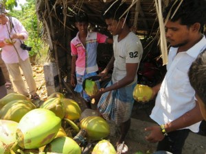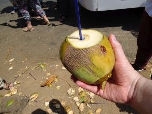 Unser Reiseleiter besorgte uns noch schnell von einem fliegenden Händler Kokosnüsse zum Trinken. Oh wie erfrischend.