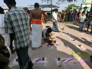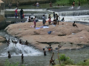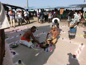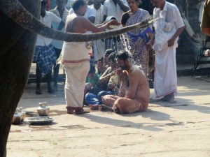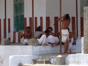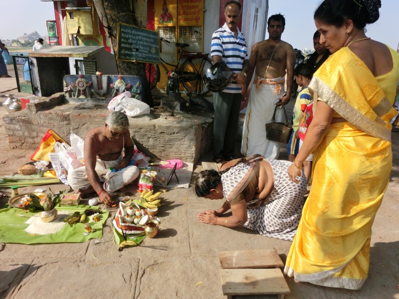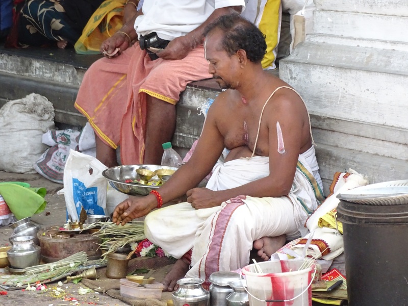 Bevor wir in Trichy ankamen, durften wir an einem heiligen Fluss (war aber fast ausgetrocknet), an einem Trauerritual teilnehmen. Hier gab es 50 Priester, welche für 13 Tage von trauernden Familien gemietet werden. Das war so beeindruckend und Gänsehaut pur.