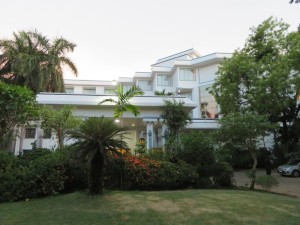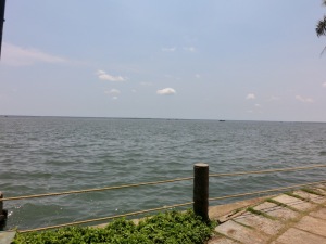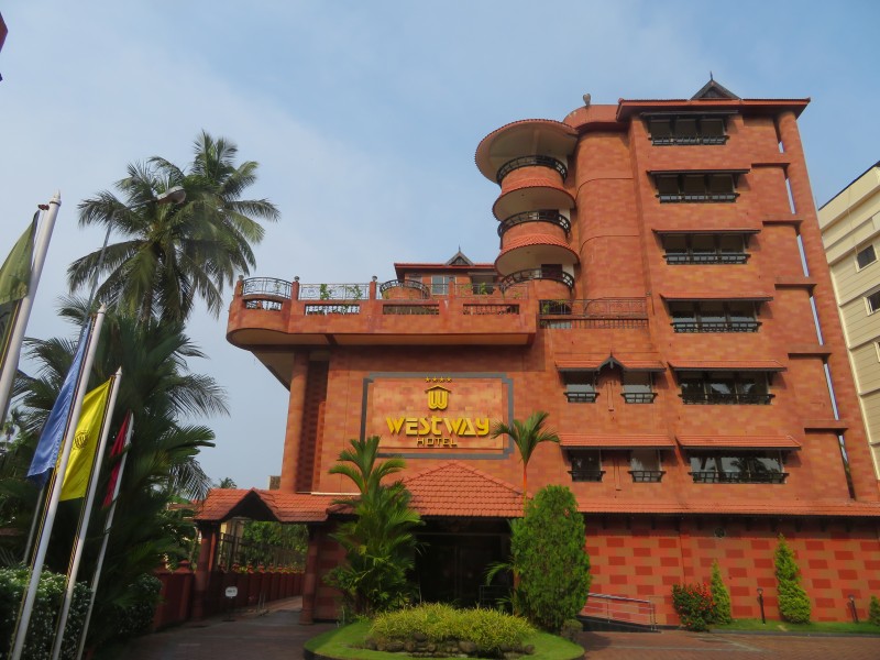 Wieder im Bus, fuhren wir vom Fischhafen aus auf eine künstlich aufgeschüttete Halbinsel. Um diese Insel zu erschaffen und zu bebauen, brauchte man alleine 5 Jahre um alle Schlangen zu beseitigen. Auf dieser Halbinsel stand unser nächstes Hotel, das „Gateway“ in Ernakulam.