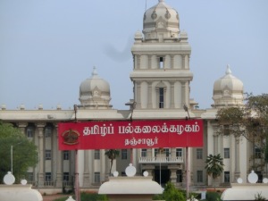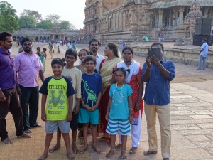 Endlich angekommen in Tanjore. Quelle Wikipedia: „Thanjavur, früher anglisiert Tanjore, ist eine Stadt im südindischen Bundesstaat Tamil Nadu. Die damalige Municipality Thanjavur hatte beim Zensus 2011 etwa 223.000 Einwohner. Sie liegt im Mündungsdelta des Kaveri-Flusses, rund 320 Kilometer südlich von Chennai. Thanjavur war von 9. bis zum 11. Jahrhundert die Hauptstadt des Chola-Reiches, des bedeutendsten mittelalterlichen Königreiches in Südindien. Später herrschten in Thanjavur die Nayaks (1535–1673) und die Marathen (1674–1855). Heute ist die Stadt Verwaltungssitz des Distrikts Thanjavur und Standort der Tamil University. Hauptsehenswürdigkeit Thanjavurs ist der monumentale Brihadishvara-Tempel, der 1010 auf dem Höhepunkt der Macht der Chola-Dynastie entstand“.