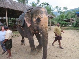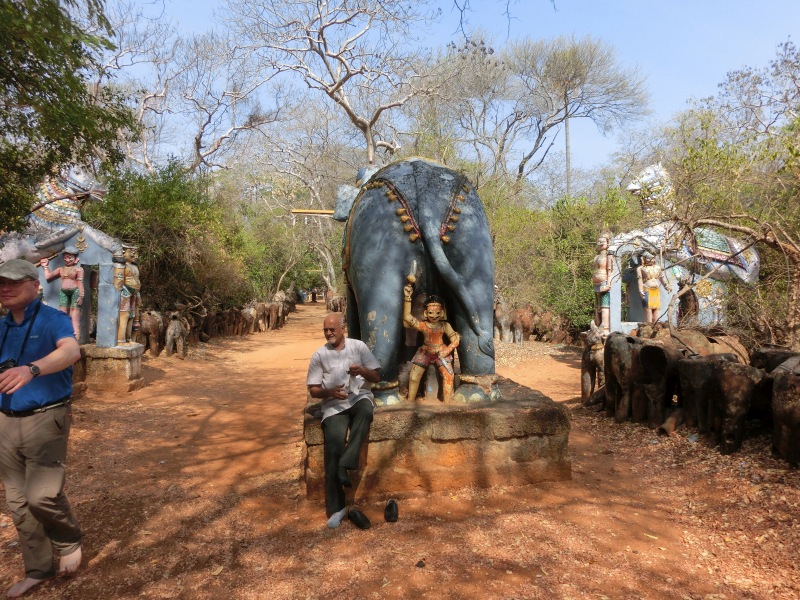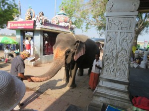 Uns wurde eine überraschung angekündigt. Ein Besuch auf einer Elefantenfarm. Dieser Besuch stand aber nicht auf dem Tourenplan. Fotoapparate und Handys mussten im Bus bleiben, denn dort war ein absolutes Fotoverbot. Warum? Auf dieser Farm leben 58 Elefanten, die für Tempelzeremonien ausgebildet werden. Was wir hier sahen, war ein Horror. Alle Elefanten sahen jämmerlich aus, abgemagert und waren verhaltensauffällig. Sie waren an 3 Beinen kurz angekettet, so dass sie sich nicht bewegen konnten. Unser Reiseleiter erzählte uns, dass die Elefanten hier regelrecht verhungern, weil angeblich nicht so viel Futter vorhanden ist. Es war so schrecklich für uns, dass wir schnell wieder raus sind. Wir waren eh die einzigen Europäer, nur Inder. Nun wussten wir auch, warum es dieses Fotoverbot gab. Im Internet schreien die Tierschützer Alarm.