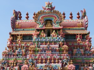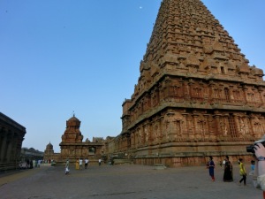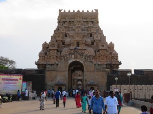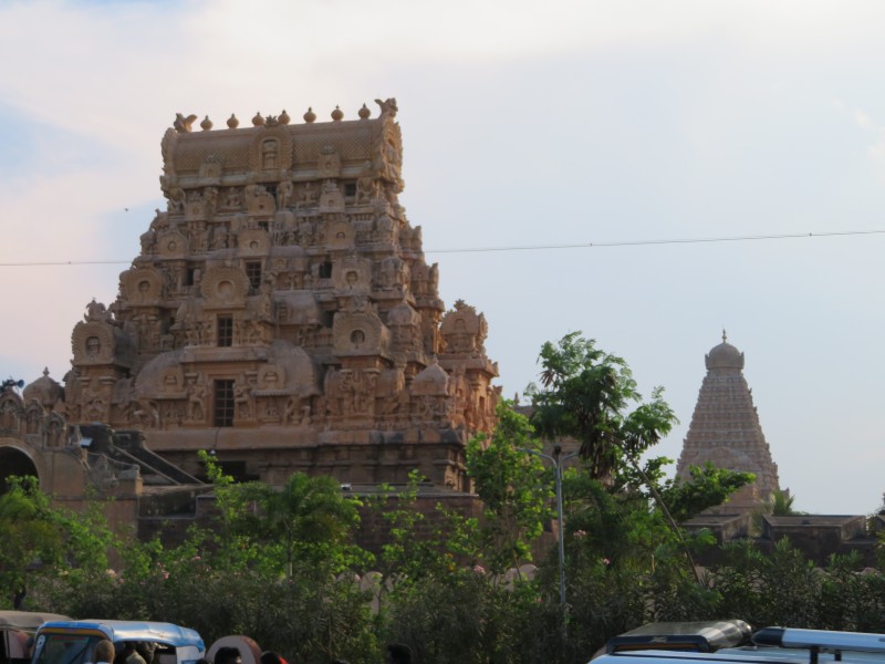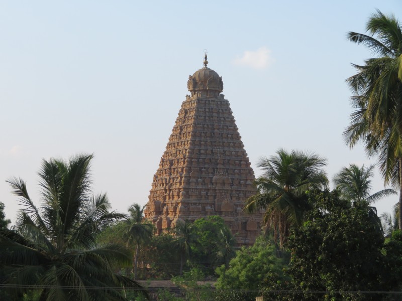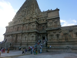 Quelle Wikipedia: „Der Brihadishvara-Tempel ist ein der hinduistischen Gottheit Shiva geweihter Tempel in der ehemaligen Hauptstadt des Chola-Reichs Thanjavur im indischen Bundesstaat Tamil Nadu, der unter Rajaraja I. erbaut wurde. Er gilt als einer der bedeutendsten Tempel Südindiens und gehört als einer der drei „großen Tempel der Chola-Dynastie“ (gemeinsam dem Brihadishvara-Tempel in Gangaikonda Cholapuram und dem Airavateshvara-Tempel in Darasuram) zum Weltkulturerbe der UNESCO“.