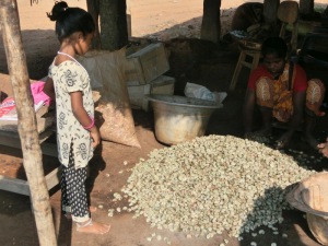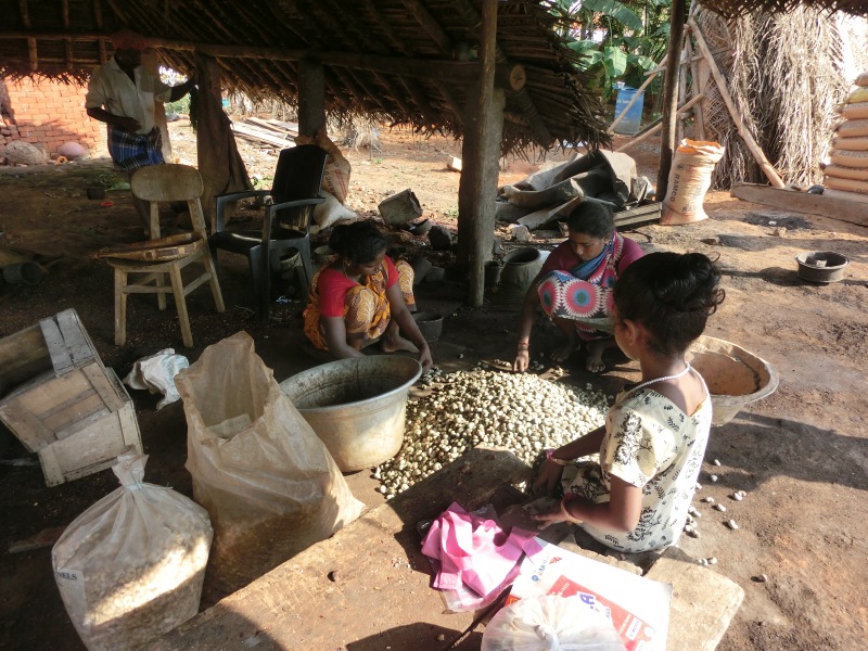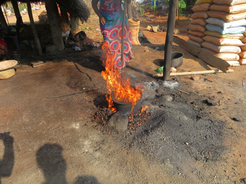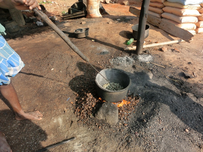 Unser Bus hielt an ein einer Cashewnuss Herstellung. Das war ein Familienunternehmen und sah für uns sehr gefährlich aus.