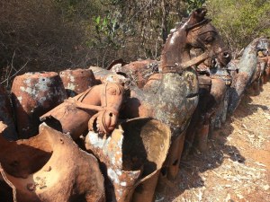 Bevor es weiter ging zu unserem Ziel, fuhr der Bus mal wieder vom Wege ab und wir erlebten etwas, was nicht auf dem Reiseplan stand. Mitten in der Natur stand plötzlich ein großes Eingangstor. Ab hier ging es zu Fuß weiter. Wir befanden uns auf einer Allee, auf welcher links und rechts uralte Tonpferdefiguren standen.
