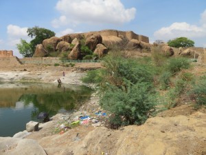 Nach einer kleinen Irrfahrt kamen wir auf der sehr abseits gelegenen Anlage „Gumbaz“ an. Hier befinden sich die Gräber eines Maharadschas. Es war so heiß, dass wir sogar auf Socken die heißen Steine spürten. Viel gab es dort nicht zu sehen.