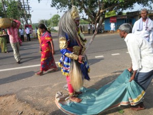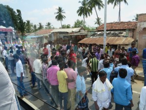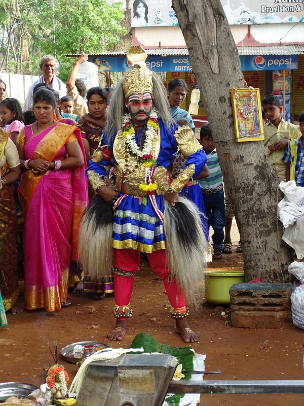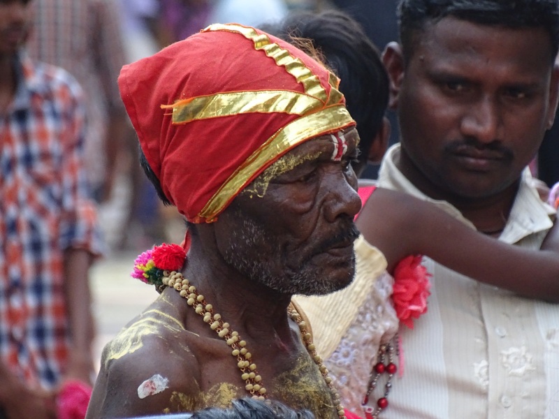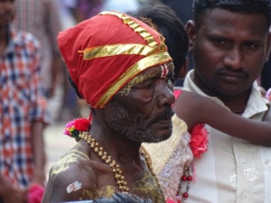Plötzlich mitten auf der Straße ging es nicht weiter, eine Massenansammlung. Wir sind dann alle ausgestiegen, weil unser Reiseleiter meinte, wir erleben hier was nicht so oft zu sehen wäre. Eine Zeremonie mit einem Guru, welcher sind in Trance tanzte. Die genaue Bedeutung dafür haben wir nicht verstanden, aber es war sehr beeindruckend. Wir wurden sogar eingeladen, dem Zug zu folgen in mit in ihr Dorf zu kommen. Leider mussten wir aber weiter.