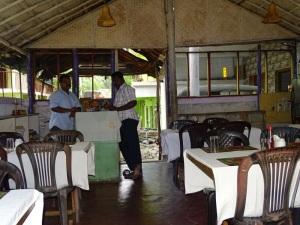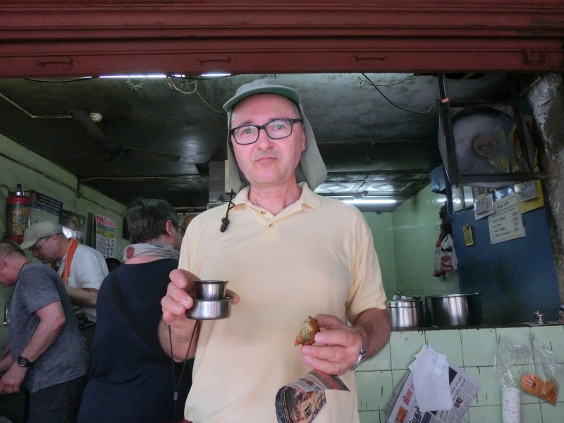 Mega anstrengend bei den Temperaturen und der hohen Luftfeuchtigkeit. Ohne Wasserflasche in der Hand ging gar nichts. Aber auch der Hunger meldete sich bald. Wir kehrten in ein Einheimisches Restaurant ein, wo man noch mit den Fingern isst. Einladend sah das nicht gerade aus und ob ich dort alleine eingekehrt wäre, bezweifele ich.