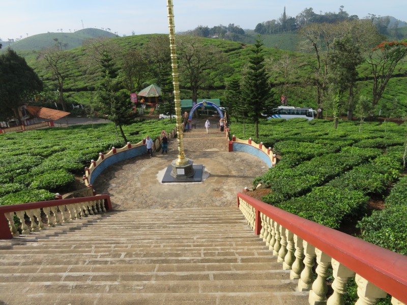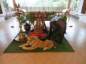 Als wir auf dem Berg ankamen, besuchten wir den Jain Tempel in Kalpetta. Hier war gerade eine Hochzeitszeremonie. Ihr Allerheiligstes wurde extra für uns geöffnet. Die Statur darin ist völlig aus Gold und völlig nackt.
