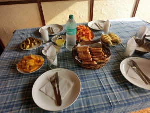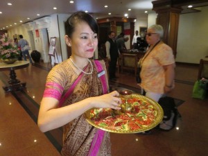 Endlich um 3.00 Uhr in der Früh konnten wir ins Bett fallen. Die Nacht war sehr kurz, um 6.00 Uhr wurden wir wieder per Telefon geweckt, denn um 7.00 Uhr gab es unser erstes indisches Frühstück in Buffetform.