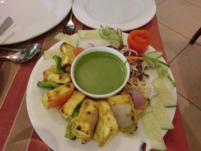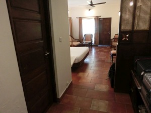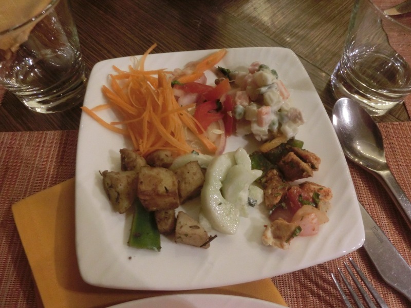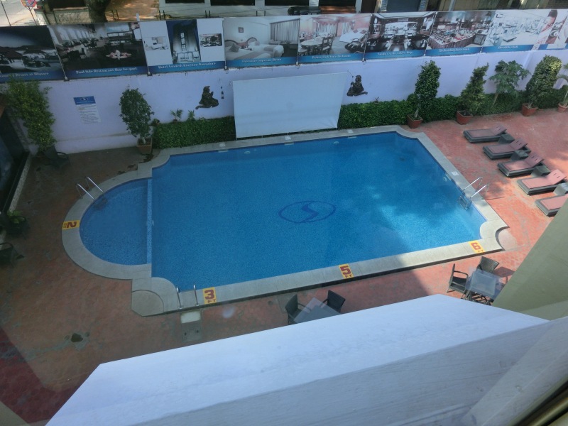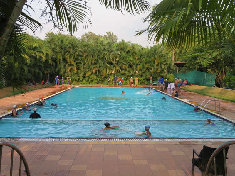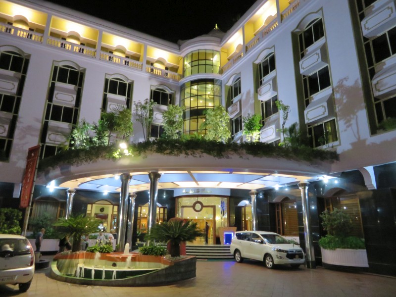 Im Hotel „Sangam“ waren wir dann gegen 16.45 Uhr. In diesem sehr schönen Hotel fühlten wir uns gleich wohl. Nach dem Begrüßungsgetränk erfolgte die Zimmerverteilung. Wir bekamen Zimmer 223. Wir freuten uns zwar auf den Pool, aber dieser war nicht nutzbar, er wurde gereinigt. Also nach Beziehen des Zimmers erst einmal unter die Dusche und den indischen Staub abgewaschen, umgezogen und um 19.00 Uhr ging es dann zum Abendbrot.