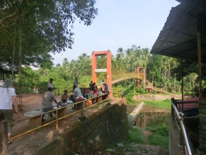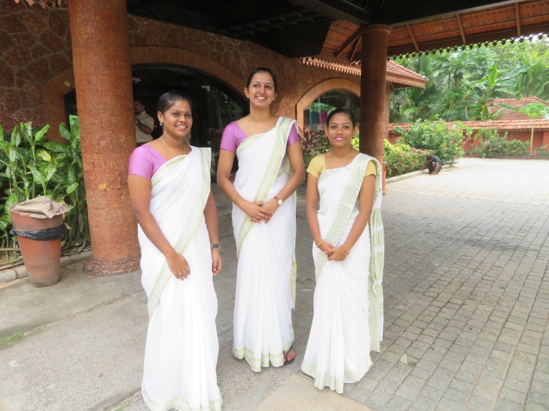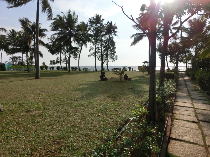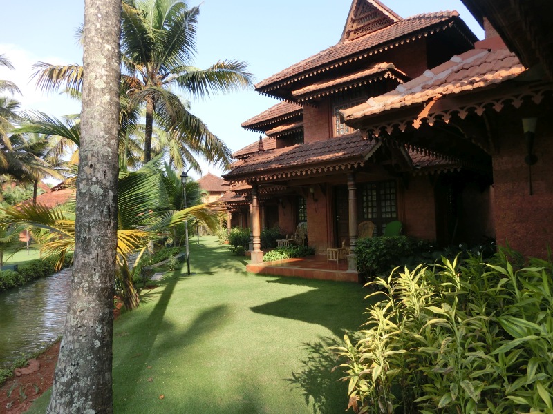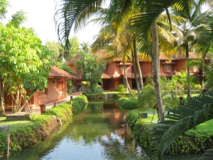 Diese wunderschöne weitläufige Gartenanlage war ein Traum. Die Anlage im Keralastil ist aber etwas abgelegen. Unser Bus kam kaum durch die schmalen Wege zum Hotel. Die Anlage befindet sich direkt am See. Aber man kann hier nicht baden. Mit einem hoteleigenen Schiff kann man sich kostenlos über den See fahren lassen. Diese Fahrt dauerte 1 Stunde. Durch die Gartenanlage führen Wasserläufe. Mit einem kostenfreien Kajak kann man diese befahren.