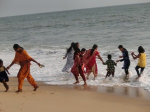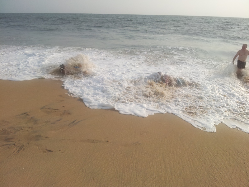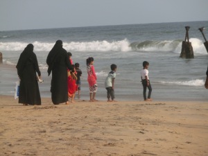 Um 16.30 Uhr mussten wir uns wieder treffen, denn wir sind ans Meer gefahren. Baden konnten wir dort aber nicht. Der Strand war so voll, es waren Menschen aller Religionen vorhanden, Juden, Muslime, Hindus usw. Das war ein buntes Treiben. Es lag so viel Müll rum.