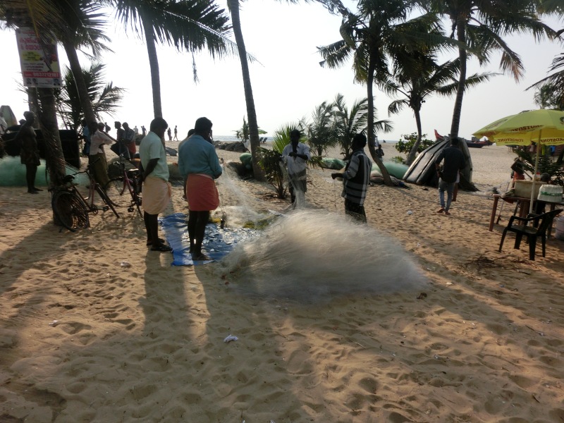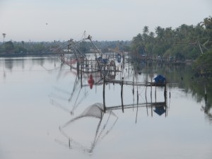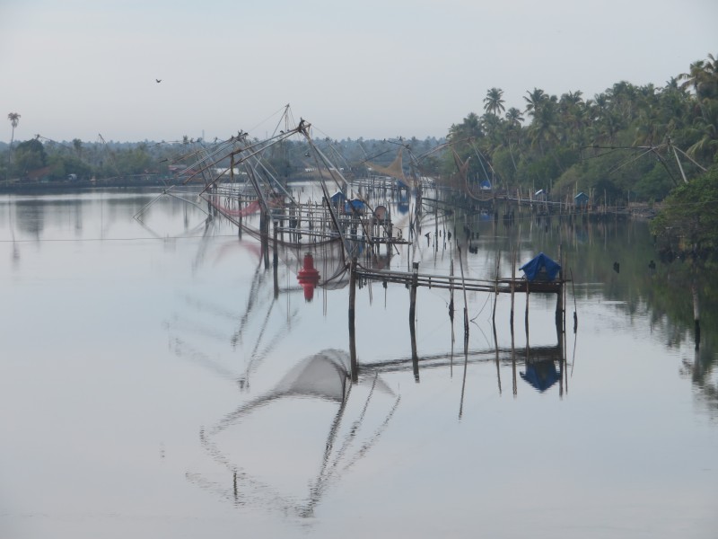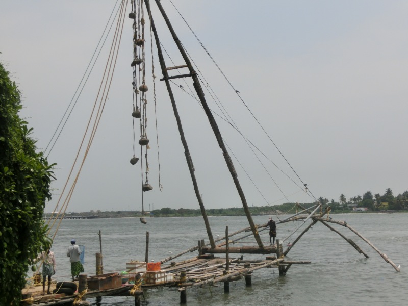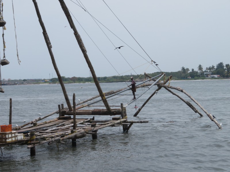 An der Nordspitze der Halbinsel Fort Kochi befinden sich die berühmten Chinesischen Fischernetze. Sie sollen schon im 13. Jahrhundert durch chinesische Kaufleute vom Hofe Kublai Khans eingeführt worden sein. Die schweren Holzkonstruktionen, an denen Netze hängen, werden vor allem bei Hochwasser genutzt. Zu ihrer Handhabung werden mindestens vier Männer benötigt“.