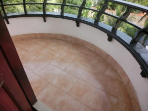 Das Zimmer war recht groß und wir hatten einen großen runden Eckbalkon. Leider war der Ausblick nicht so toll und der Pool unbrauchbar, er war völlig grün.