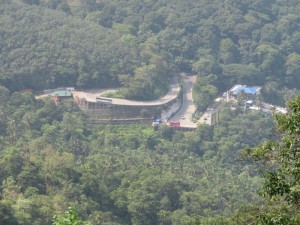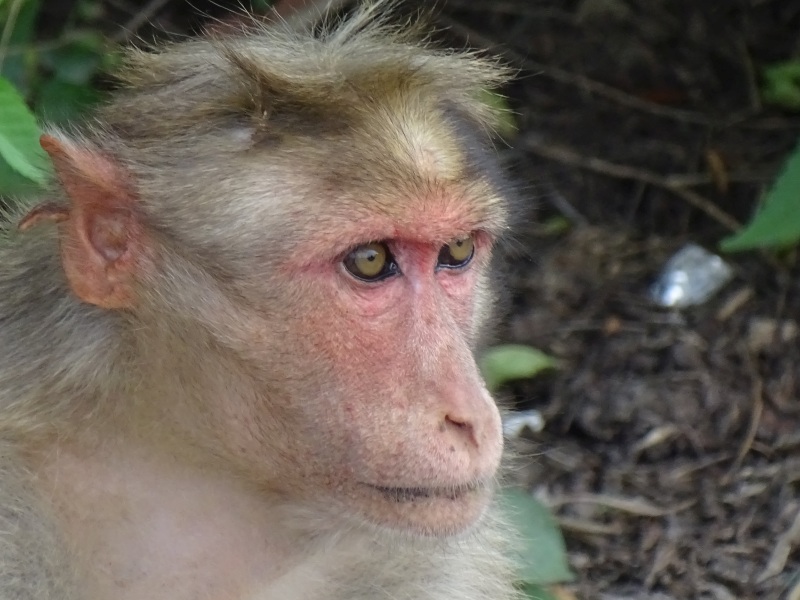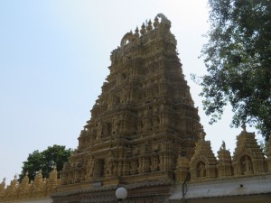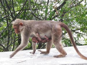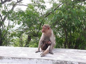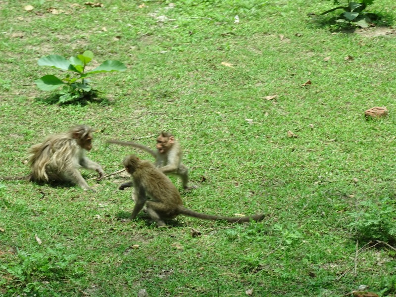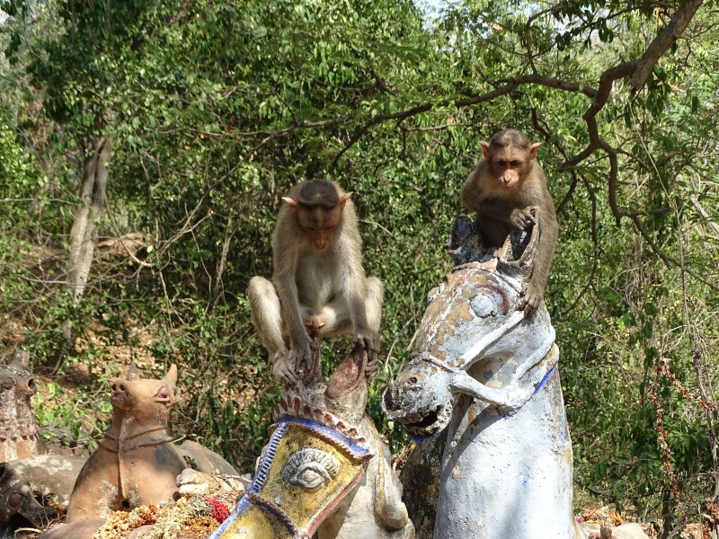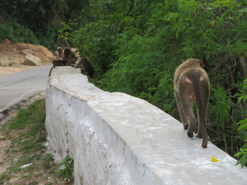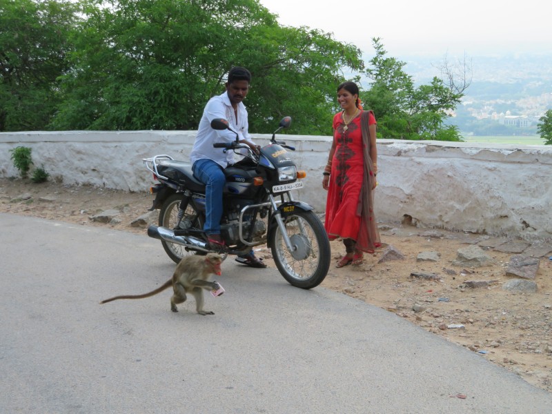 Weiter ging es zu einem auf einen 1062 m hohen Hügel. Hier oben befindet sich ein hinduistisches Pilgerziel. Dort steht der Durga geweihte Sri-Chamundeswari-Tempel. überall saßen Affen an der Straße.
