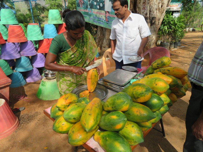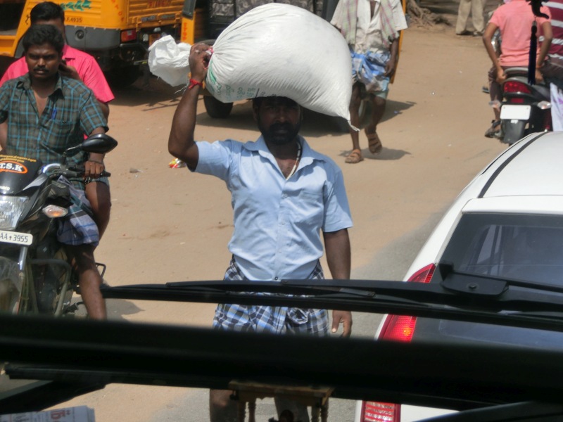 Wecken war dann bereits um 5.30 Uhr und das Frühstück stand für uns um 6.00 Uhr bereit. Los ging es nach einem reichhaltigen guten Frühstücksbuffet mit dem Bus in Richtung Trichy. Auf der Fahrt dorthin konnten wir diese Fotos machen.