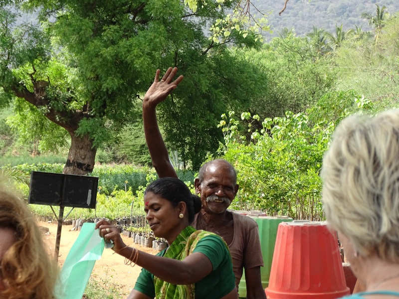 Unterwegs gab es dann eine schöne Verabschiedung von unserem Reiseleiter Ravi, weil für ihn die Reise hier endete. Er musste weiter zum Flieger nach Delhi. In einem indischen Stoffsäckchen übergaben wir ihm sein Trinkgeld, was wir in der Reisegruppe gesammelt hatten.
