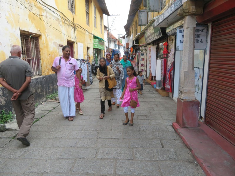 Angekommen in Kochi, folgte zur Orientierung eine Stadtrundfahrt. Anschließend ging es zu Fuß durch das „Jüdische Viertel“.