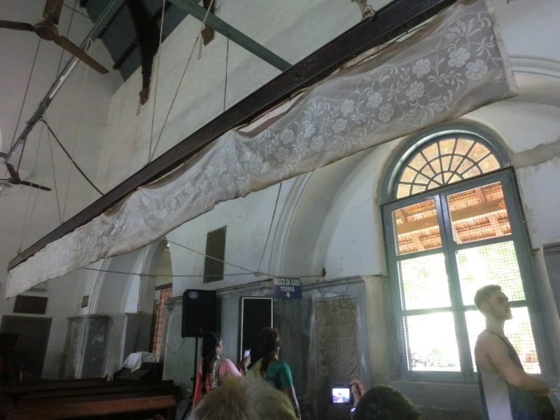 „Fort Kochi: Die Franziskanerkirche (St. Francis Church) ist die älteste von Europäern erbaute Kirche Indiens. Sie wurde 1503 aus Holz errichtet, Mitte des 16. Jahrhunderts aber als Steinbau erneuert. Hier wurde 1524 auch Vasco da Gama beigesetzt. Sein Grabstein ist noch heute dort zu sehen, obwohl seine Gebeine 1539 nach Lissabon überführt wurden.