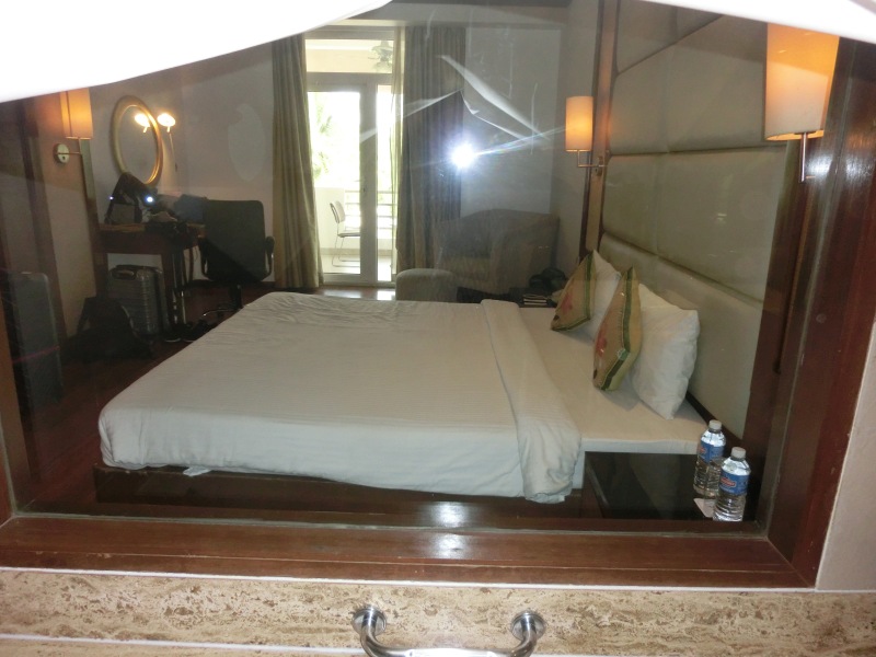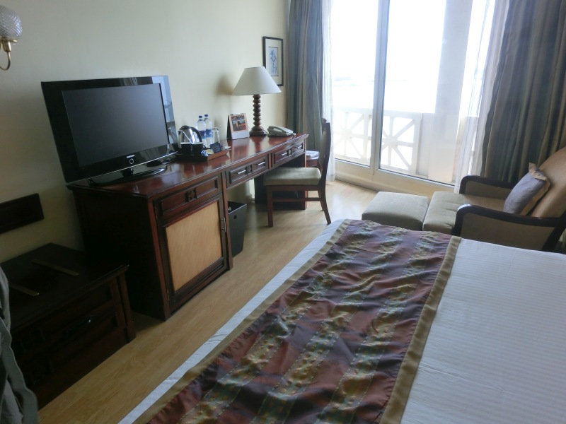 Das Hotel liegt in der teuersten Stadt Indiens, so unser Reiseleiter. Im Hotel angekommen, wurden wir wieder freundlich begrüßt und zügig gab es die Zimmerschlüssel. Ein tolles sehr neues Hotel, freundlich und einladend. Wir bekamen Zimmer 406. Mit dem Fahrstuhl ging es in die 4. Etage. Der Ausblick vom Zimmer mega, wir schauten aufs Wasser in den Hafen mit seinen Schiffen und Kränen.