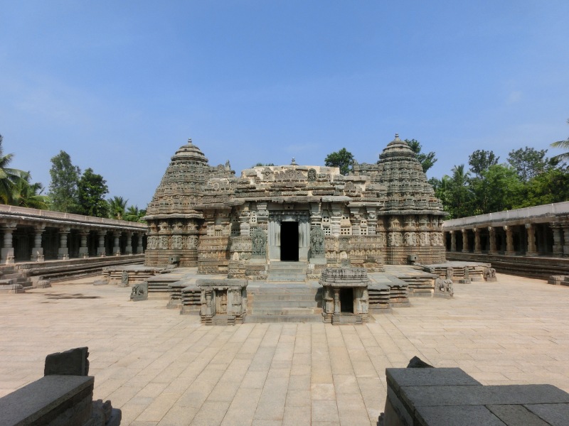Weiter ging es zum Tempel Somanathpur. Quelle Wikipedia: „Somanathapura oder Somnathpur ist ein knapp 5.000 Einwohner zählendes Dorf im Süden des indischen Bundesstaats Karnataka. Der Ort ist bekannt durch einen der besterhaltenen Hoysala-Tempel. Somanathapura liegt in einer Höhe von ca. 655 m ü. d. M. an einem ehemaligen Flussbett des Kaveri Süden des Bundesstaats Karnataka. Um die Mitte des 13. Jahrhunderts beschloss Somanatha oder Soma, ein General des Hoysala-Herrschers Narasimha III. hier einen dem Gott Krishna (oder Keshava) geweihten Tempel zu errichten. Ob der Ort schon früher existierte oder sich erst danach entwickelte, ist unklar.“